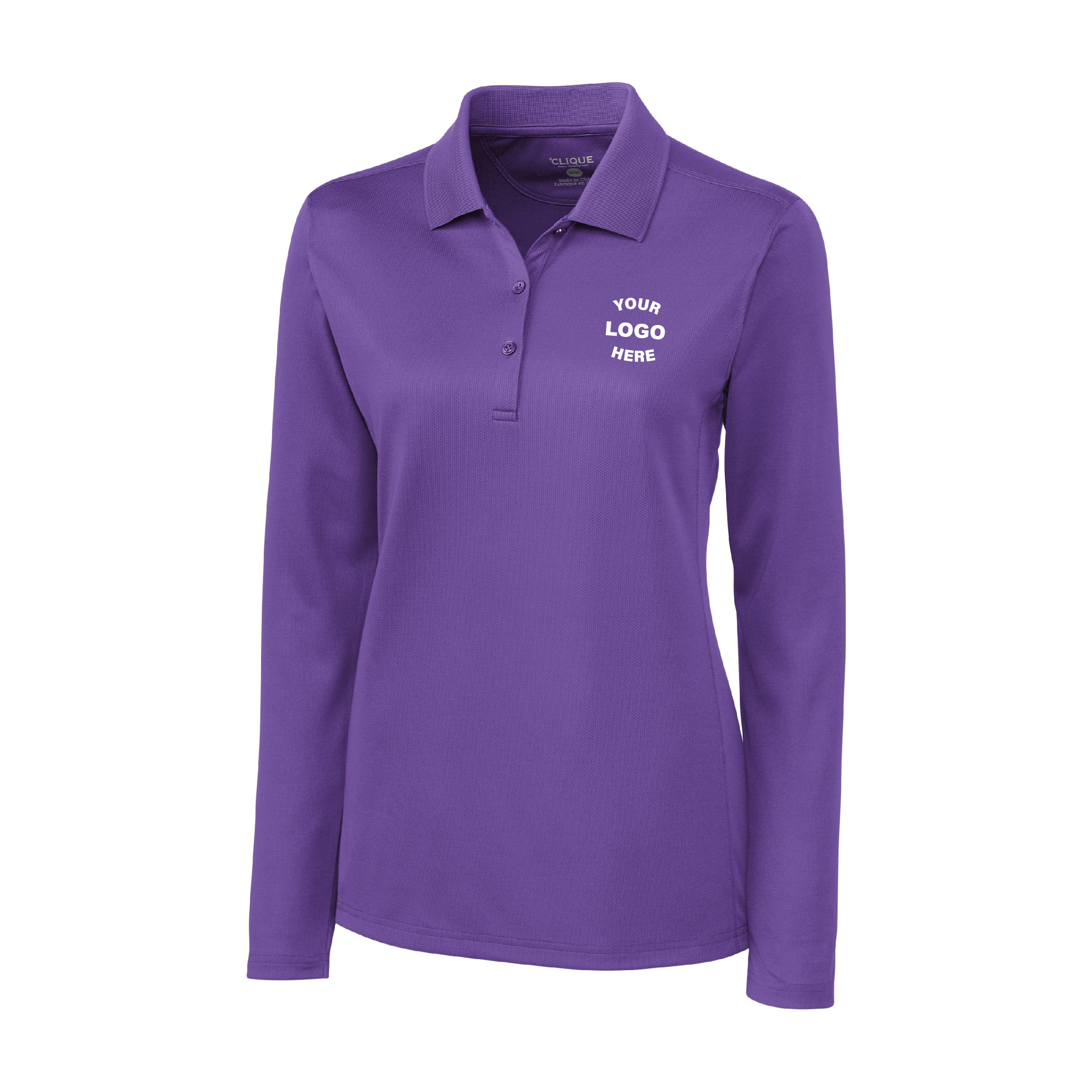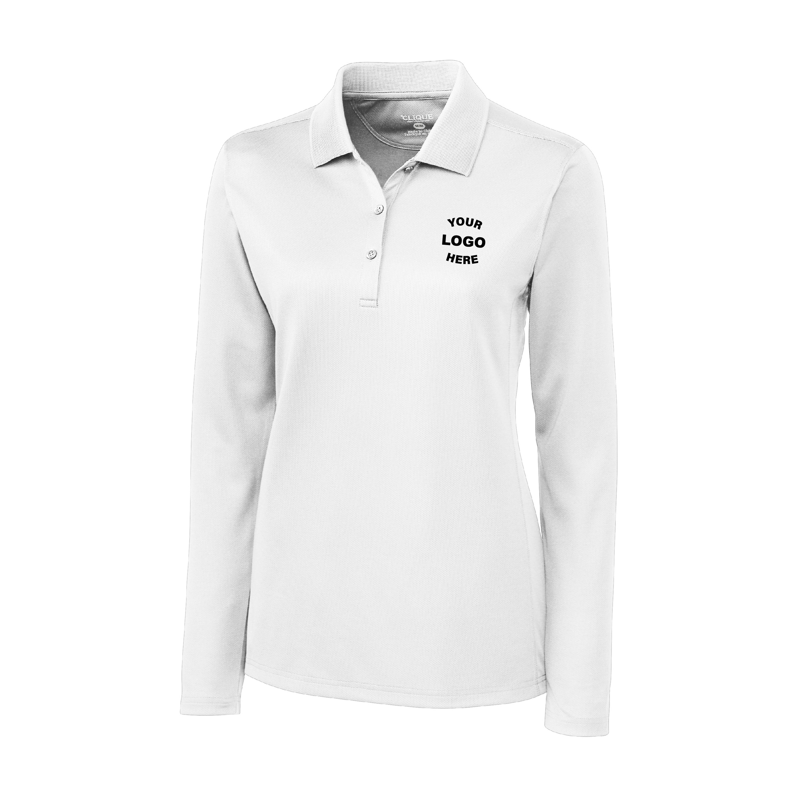 The Clique Ice Performance Pique Womens Long Sleeve Polo is your essential everyday performance pique long sleeve polo shirt for practice, work, supporting your favorite team, and for representing your school, college, team or company. Our super durable, super comfortable long sleeve polo is constructed from performance 100% Polyester pique for great style, performance, and consistent color making for a great base for embroidery or heat transfer printing. Clique apparel features no exterior branding so you can always count on Clique as a great uniform, spirit wear, and as your everyday sporty essentials.