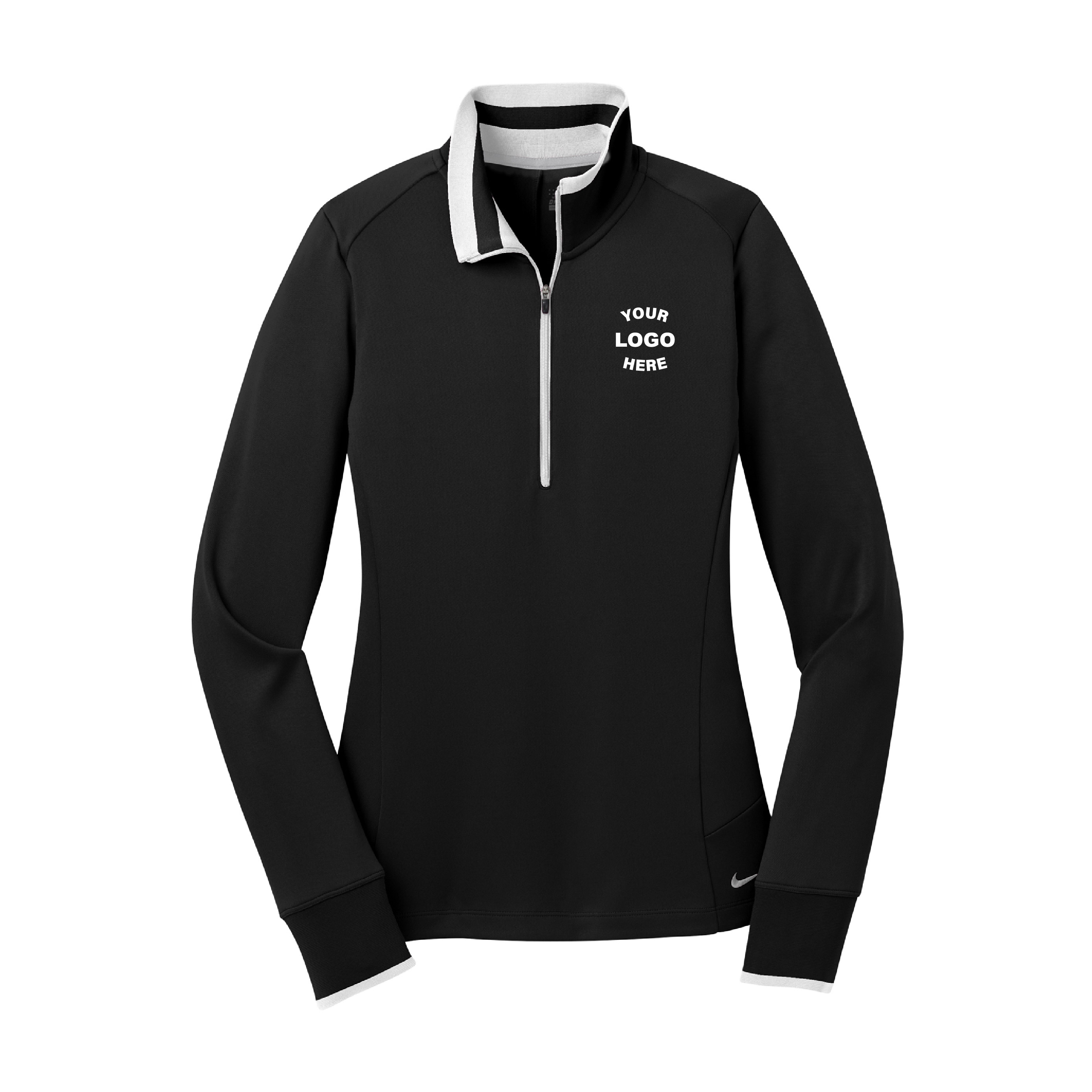 A boldly striped inner collar and reverse coil zipper give this cover-up an edge. Of course, it also performs with Dri-FIT moisture management technology.